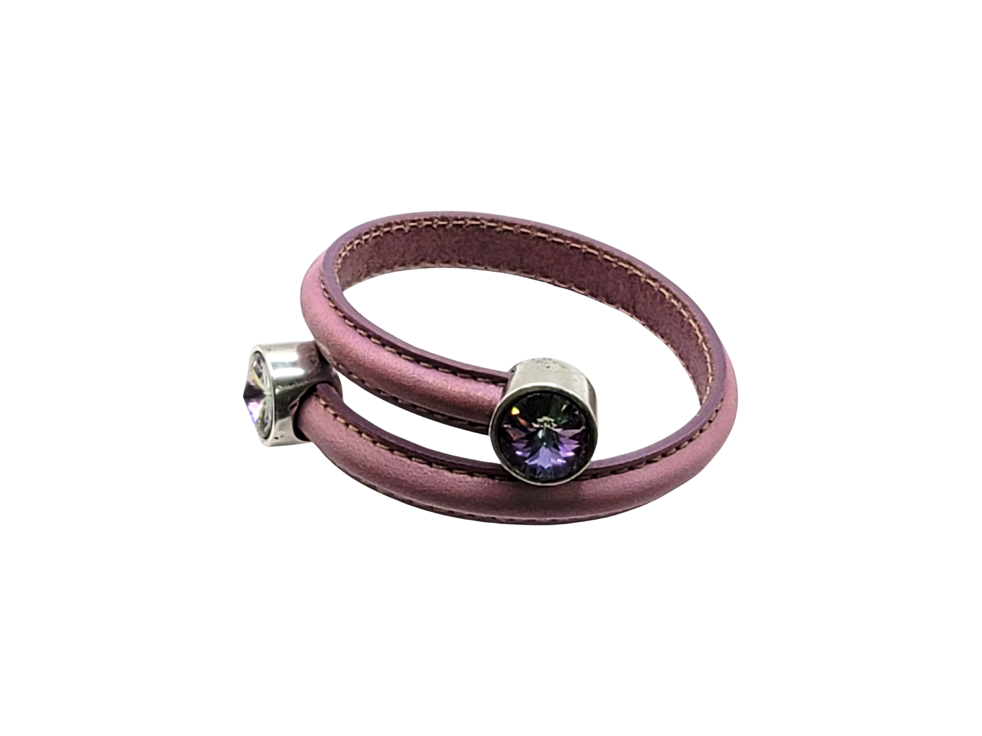 Genuine Lilac Leather High Quality Prism Crystal Cuff Wrap Bracelet