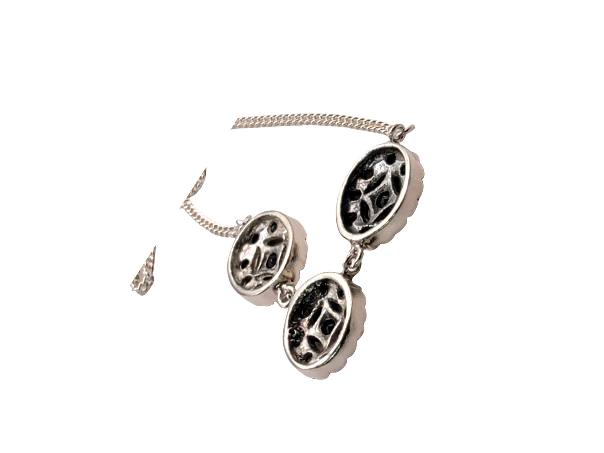 Each oval is approximately 19mm x 17mm long and wide, and hand set with blue sapphire gemstones.