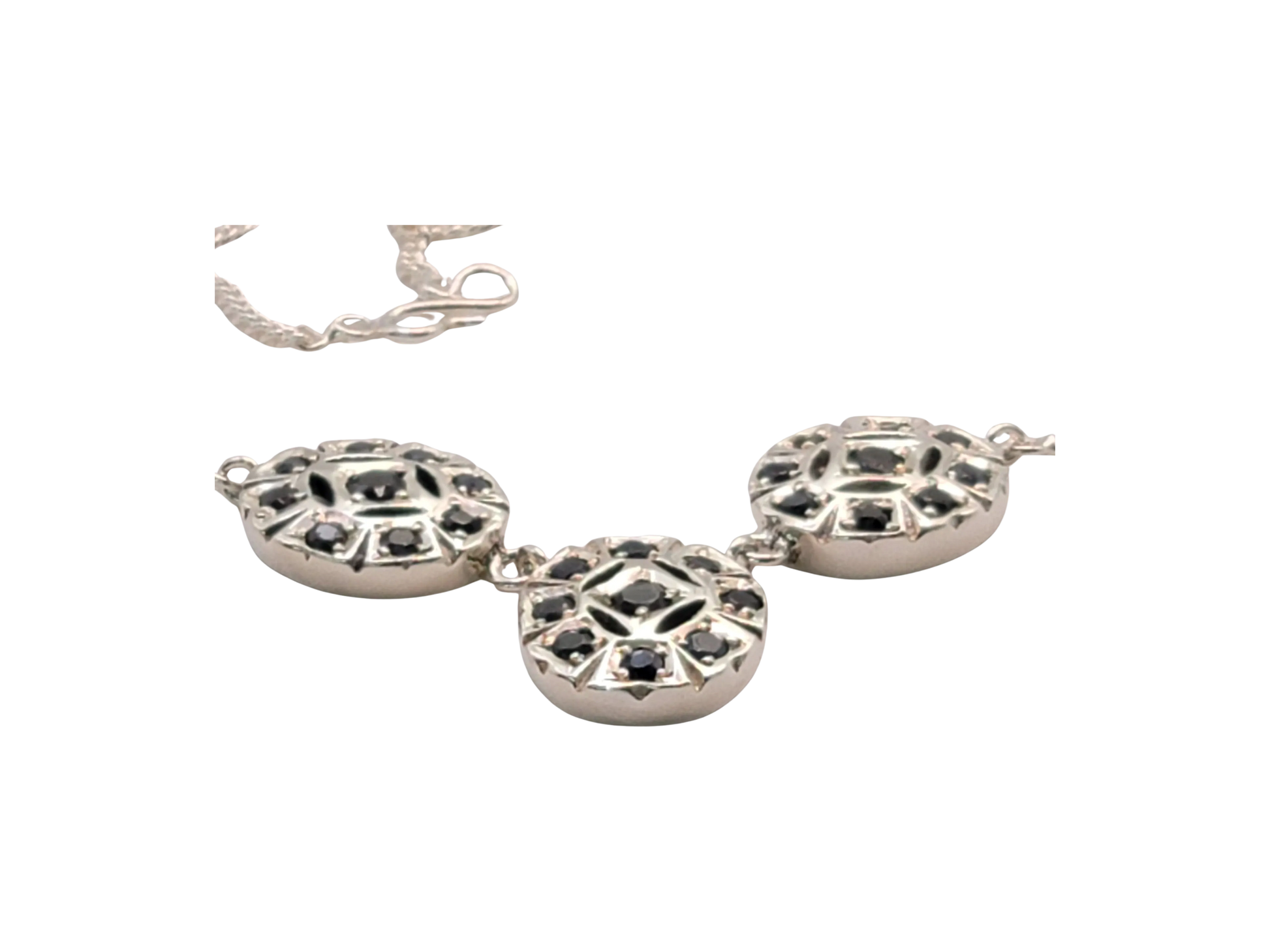 Elevate your look with our stunning three oval blue Sapphire necklace, exquisitely set in genuine .925 solid sterling silver and a solid .925 Sterling Silver curb chain. This elegant piece of jewelry is perfect for adding a touch of sophistication to any outfit. The vibrant blue sapphires are beautifully complemented by the lustrous sterling silver, creating a timeless and luxurious accessory. This is an excellent piece of solid jewelry that will accent your best daytime or evening wear.