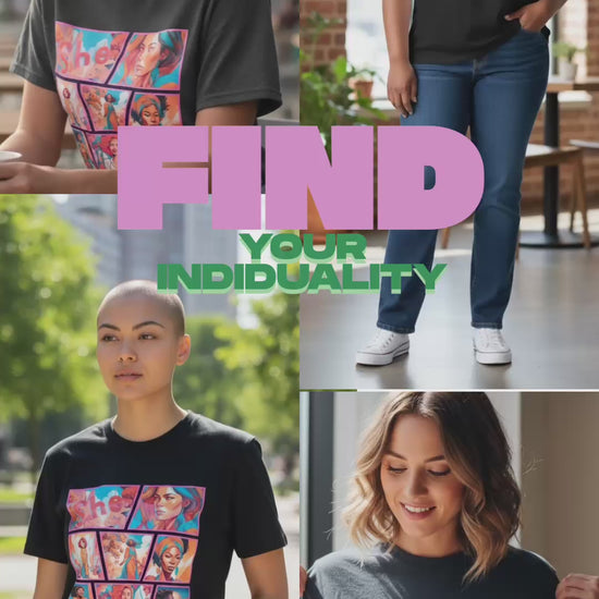 Inspiration: As a graphic novel enthusiast, "She" serves to illustrate the diverse representations of women. There is no fixed definition of her appearance, voice, or behavior. This graphic tee conveys a narrative without words. She might embody different states of being, strength, or heroism. Continue following to discover our perspective on who She is.