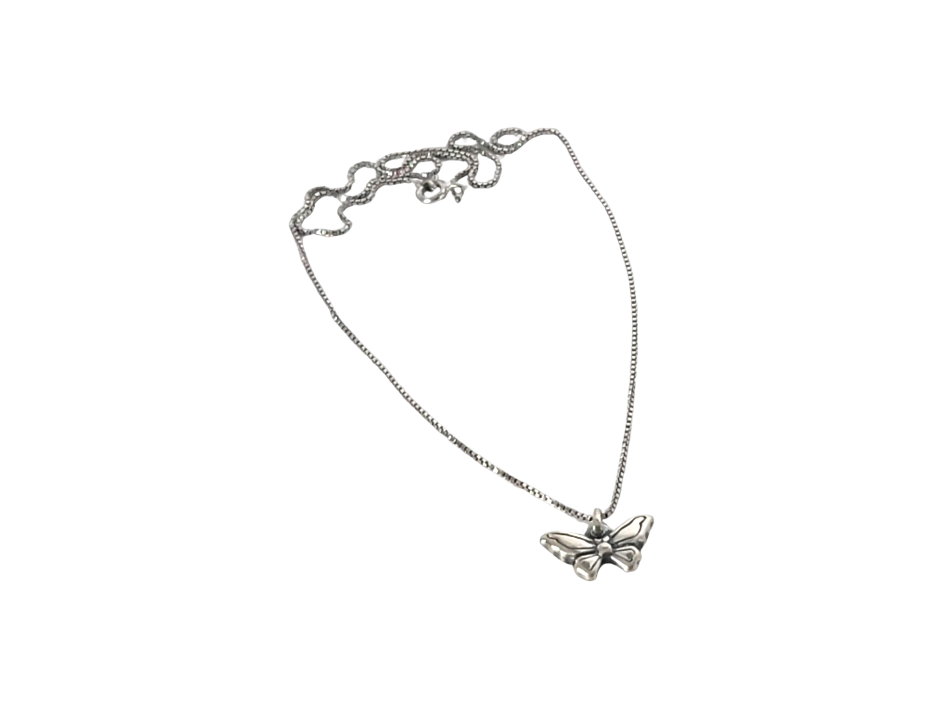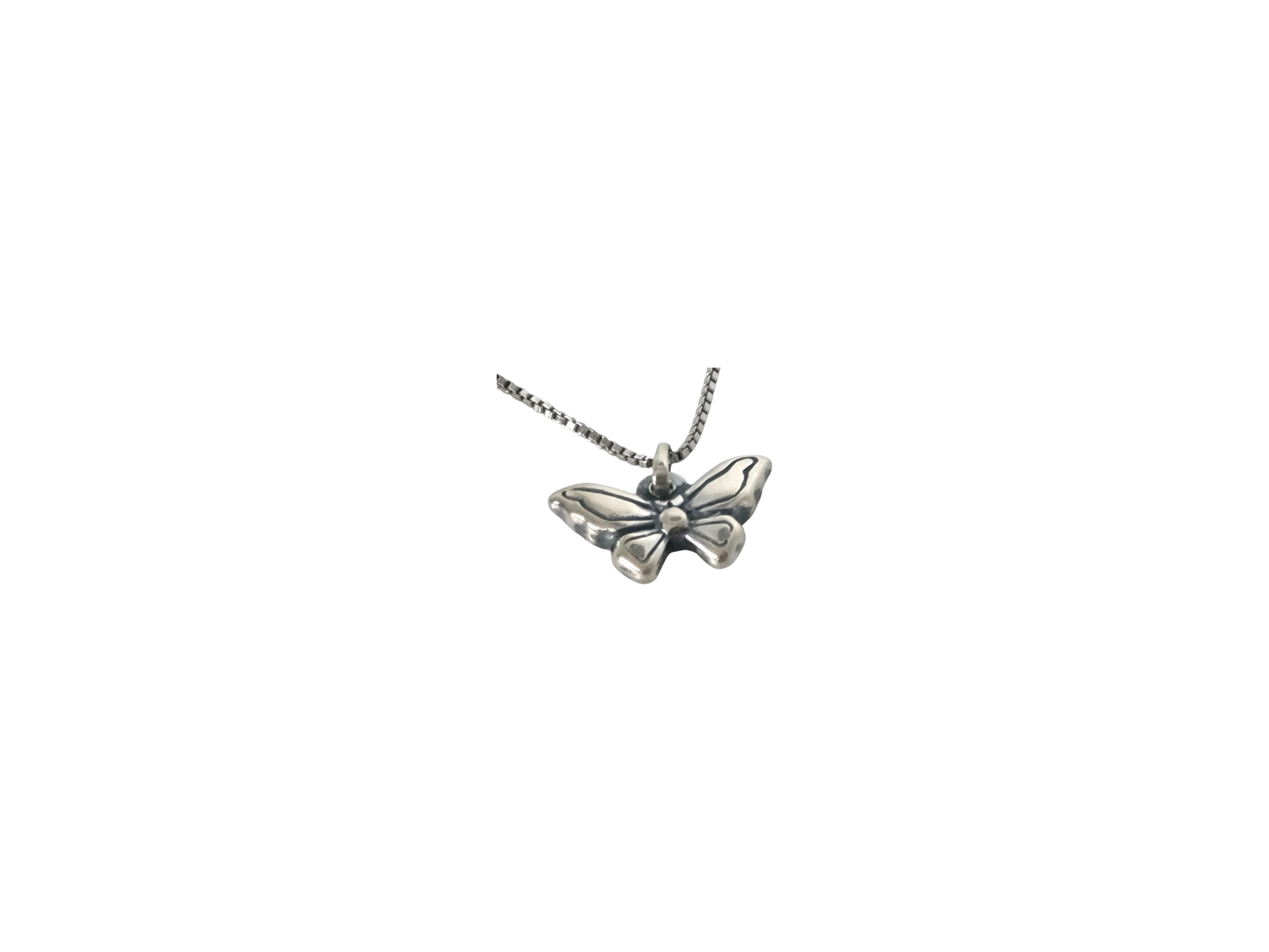 Adorable two-sided antiqued sterling silver butterfly necklace. The butterfly is fully designed on both sides.
